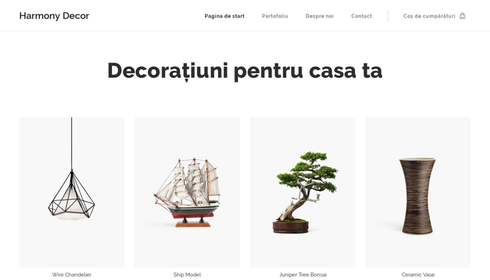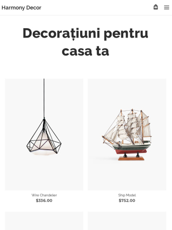 Vreți să vindeți decorațiunile hand-made online? Deschideți un magazin online de succes utilizând acest șablon fermecător! Galeria de produse de pe prima pagină este locul ideal să vă prezentați produsele unice și să tentați clienții să comande fiecare bucată pentru a-și face locuința mai primitoare. Setarea tuturor aspectelor necesare funcționării magazinului ia doar câteva minute!