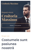 Acest șablon elegant vă va fermeca. Perfect pentru toți croitorii dedicați, acest șablon este menit să vă ajute clienții să se îndrăgostească de produse la prima vedere. Creați magazinul online perfect pentru costume elegante și nu uitați să scrieți câteva cuvinte și despre istoricul afacerii.