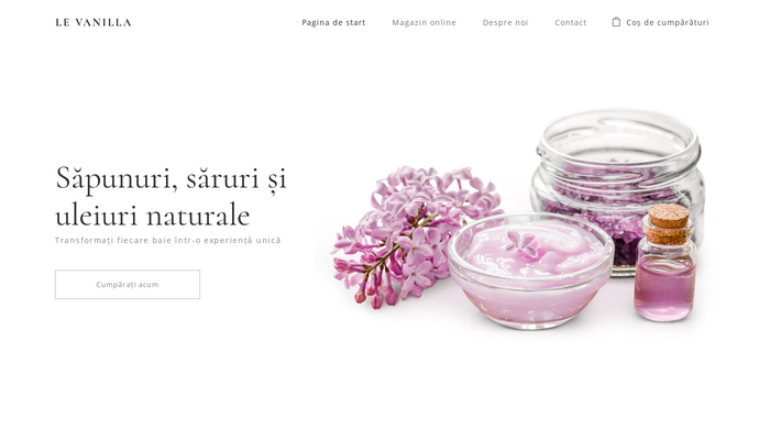 Delicat și curat ca și produsele comercializate. Acest șablon este ideal pentru vânzarea cosmeticelor hand-made! Adăugați produsele, prețurile și începeți să vindeți produsele de îngrijire unice din doar câteva click-uri.